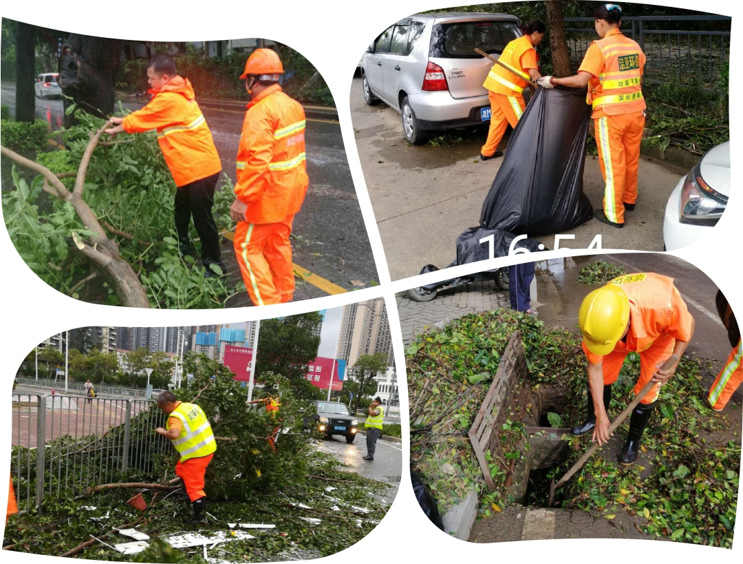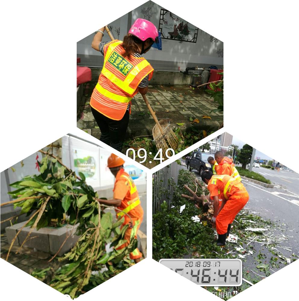 此次台风抢险中,太阳集团人团结一心,充分发扬吃苦耐劳、不怕脏不怕累的环卫精神,全体总动员,投入到这次特大的台风抢险及清理中。 |