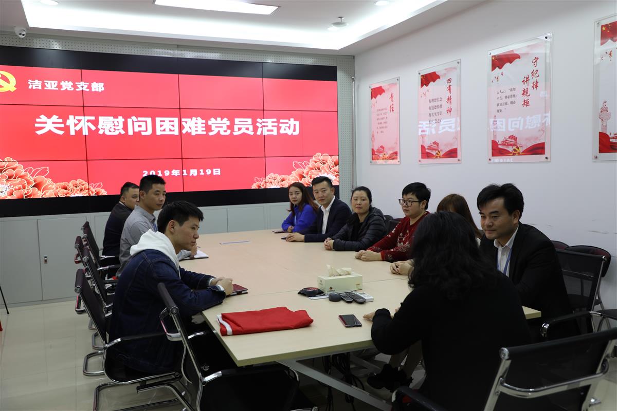 太阳集团党支部在春节来临之际,开展对困难党员的慰问活动,1月19日上午,太阳集团党支部书记朱晓芬同志走访慰问了部分困难党员家庭,为他们带去了党及太阳集团公司的关怀和温暖,并向太阳集团广大党员致以新年的问候。