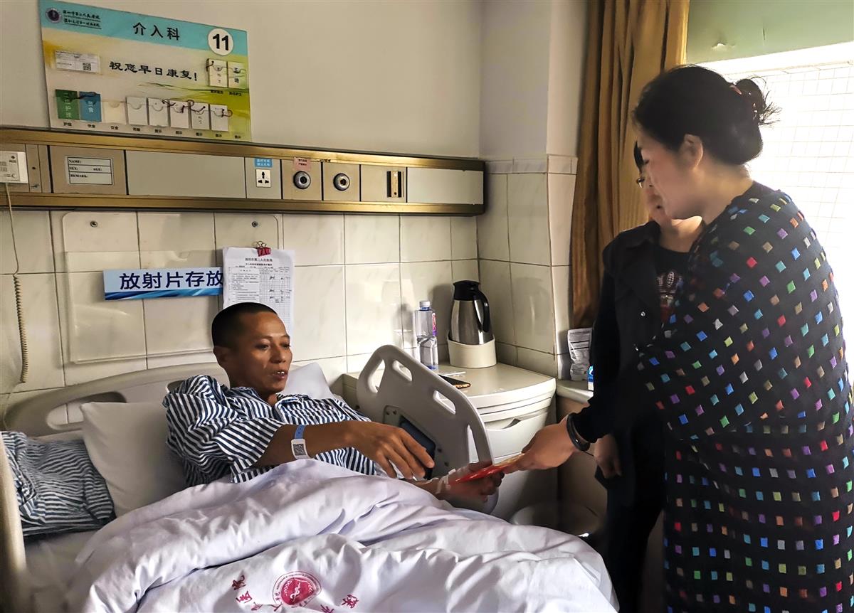 潘辉明近期突感身体不适,经医院确诊,不幸得了肝癌,此消息犹如一声惊雷,给这个家庭造成沉重的打击,巨额的医疗费和手术费给这个本不宽裕的家庭压得喘不过气来,医生说现在科学发达,此病还有得医,但需要准备一大笔钱。他妻子和儿子听到还有一线希望,稍为安慰,但一想到巨额的费用,也束手无策。当太阳集团公司总经理朱晓芬听到这一消息,当即前往医院看望,并送上慰问金,同时号召所有员工进行爱心捐款,以帮助潘经理度过难关,众志成城,抢救生命,用太阳集团人无私的爱温暖病痛中的员工和悲痛中的家属。