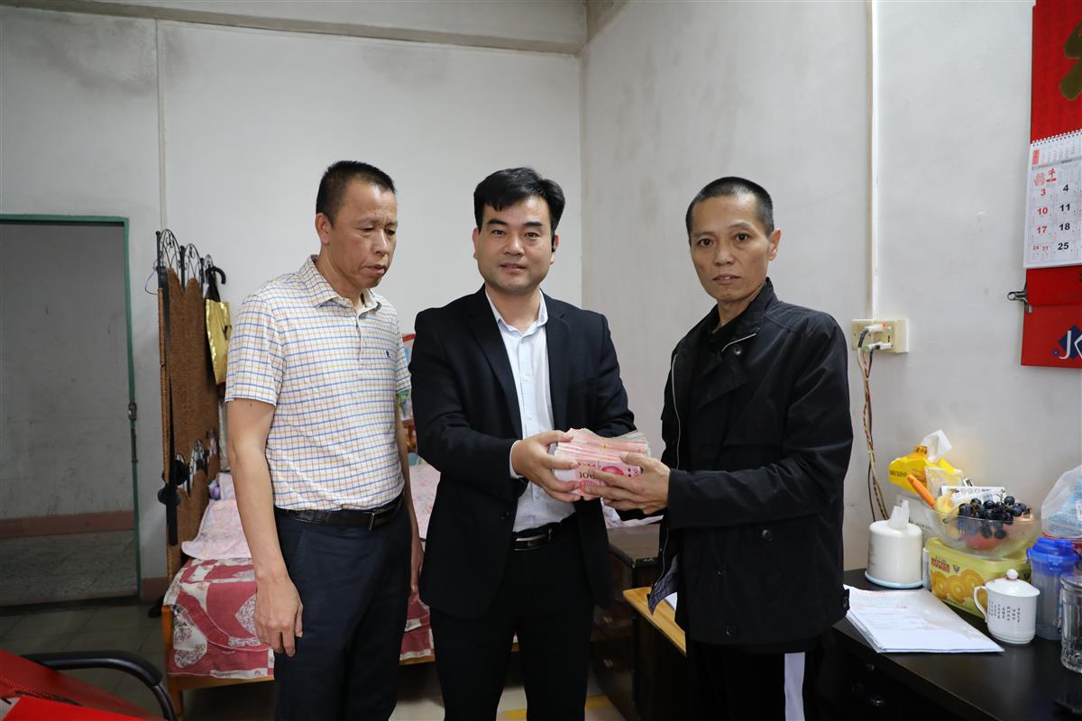 送人玫瑰,手留余香,自倡议太阳集团人为福田项目潘辉明经理爱心捐款以来,得到了广大太阳集团人的热心支持,从公司总部到分子公司、各项目部,都积极行动起来,组织了员工捐款。截止至3月26日,累计捐款人民币85185元。3月28日上午,大区经理陈木元、行政部经理黄琳代表公司到潘经理家中慰问,并亲手把凝聚众多太阳集团人爱心的善款交至潘经理手上。潘经理接过爱心捐款的一刹那,感动得热泪盈眶,表示将积极治疗,争取早日康复,重返工作岗位,认真工作,以回报朱总和每一位太阳集团人的大爱。